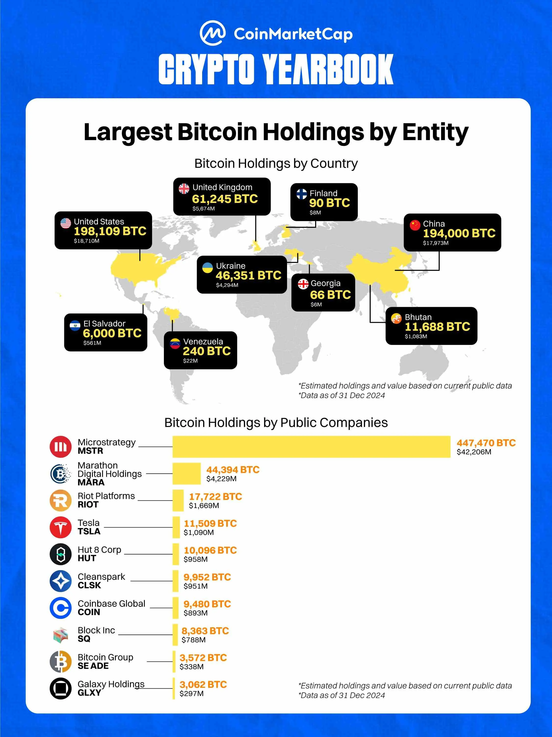 微策略以 44 万枚比特币的持仓断崖式领衔全球其他机构,甚至超过了任何一个国家的 BTC 持有量;而中美两国仍没有在比特币持有量上拉开差距。