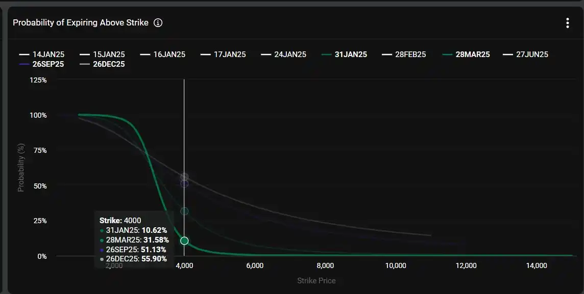 ETH 1 月底前价格超过 4 K 的可能性只有 10.62% 。