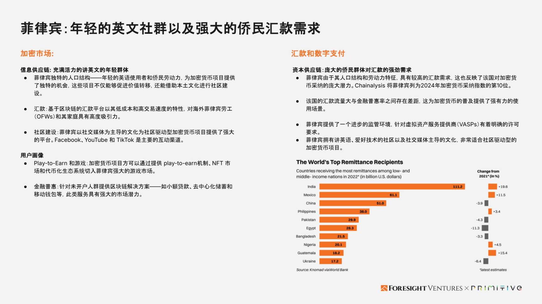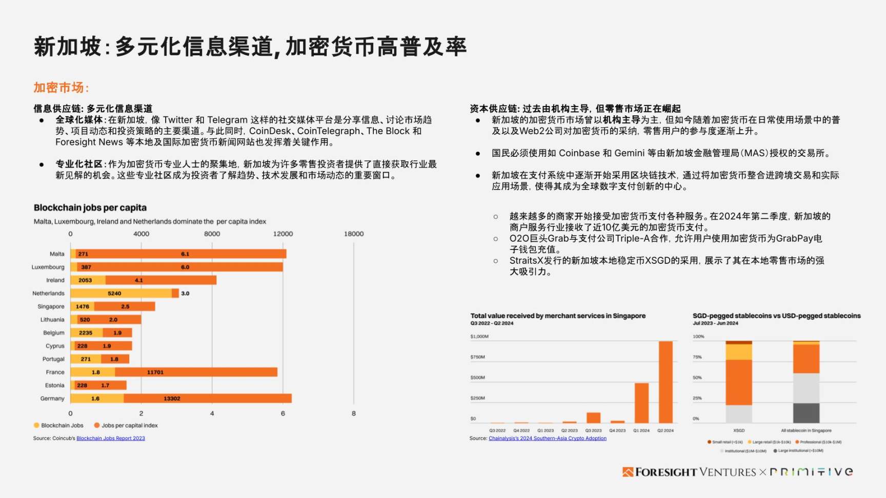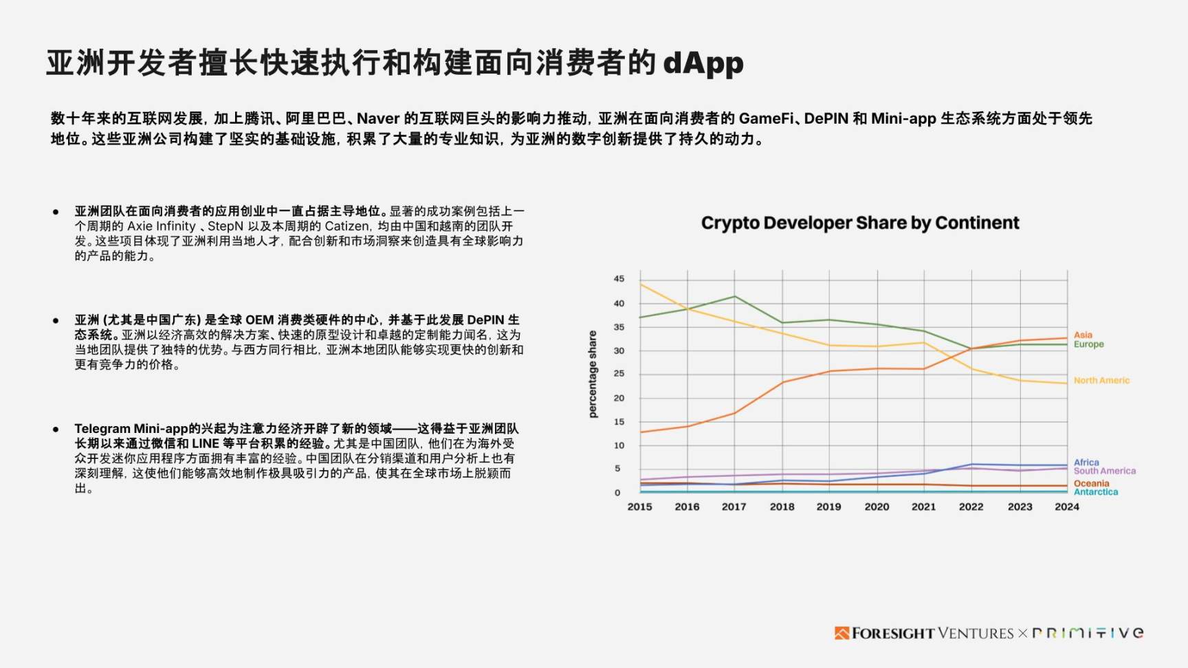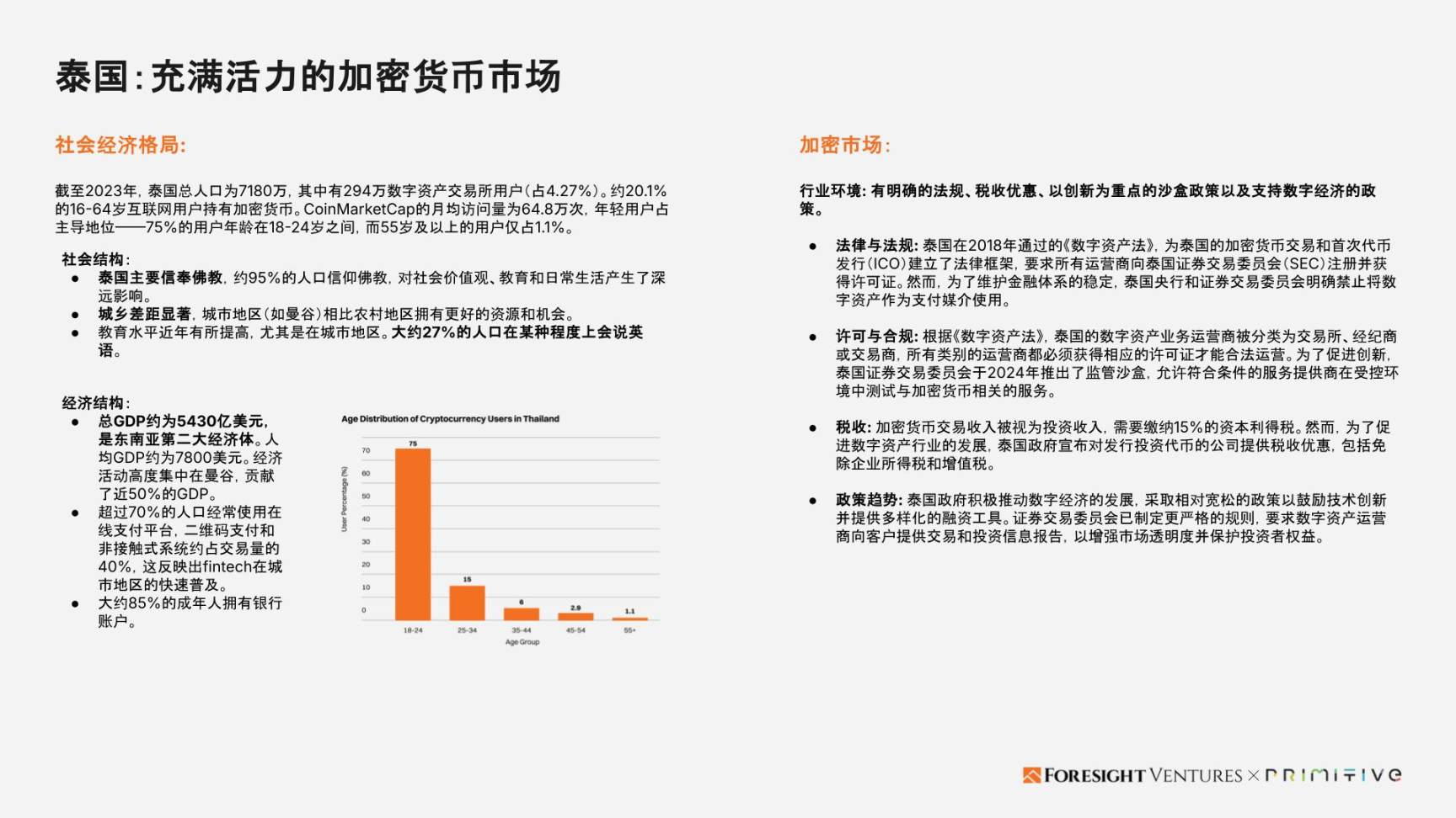 Foresight Ventures 与 Primitive Ventures 联合发布了《亚洲市场入局指南》报告,深入分析亚洲充满活力的加密市场,为探索该地区独特的机遇与挑战提供了关键指导。报告指出,亚洲是全球加密生态系统的核心,占全球加密用户的 60%,贡献了最大份额的流动性。关键发现包括:印度、印尼、越南等国家在 2024 年全球加密采用指数中排名前列;亚太地区的社会经济多样性推动了空投套利和迷因交易等行为;区域内的贸易和资本流动高度互联,显示出强大的内生凝聚力。报告还详细解读了中国、韩国、新加坡、越南和菲律宾等国家的加密市场特性,展现了亚洲在全球加密行业中的重要地位。