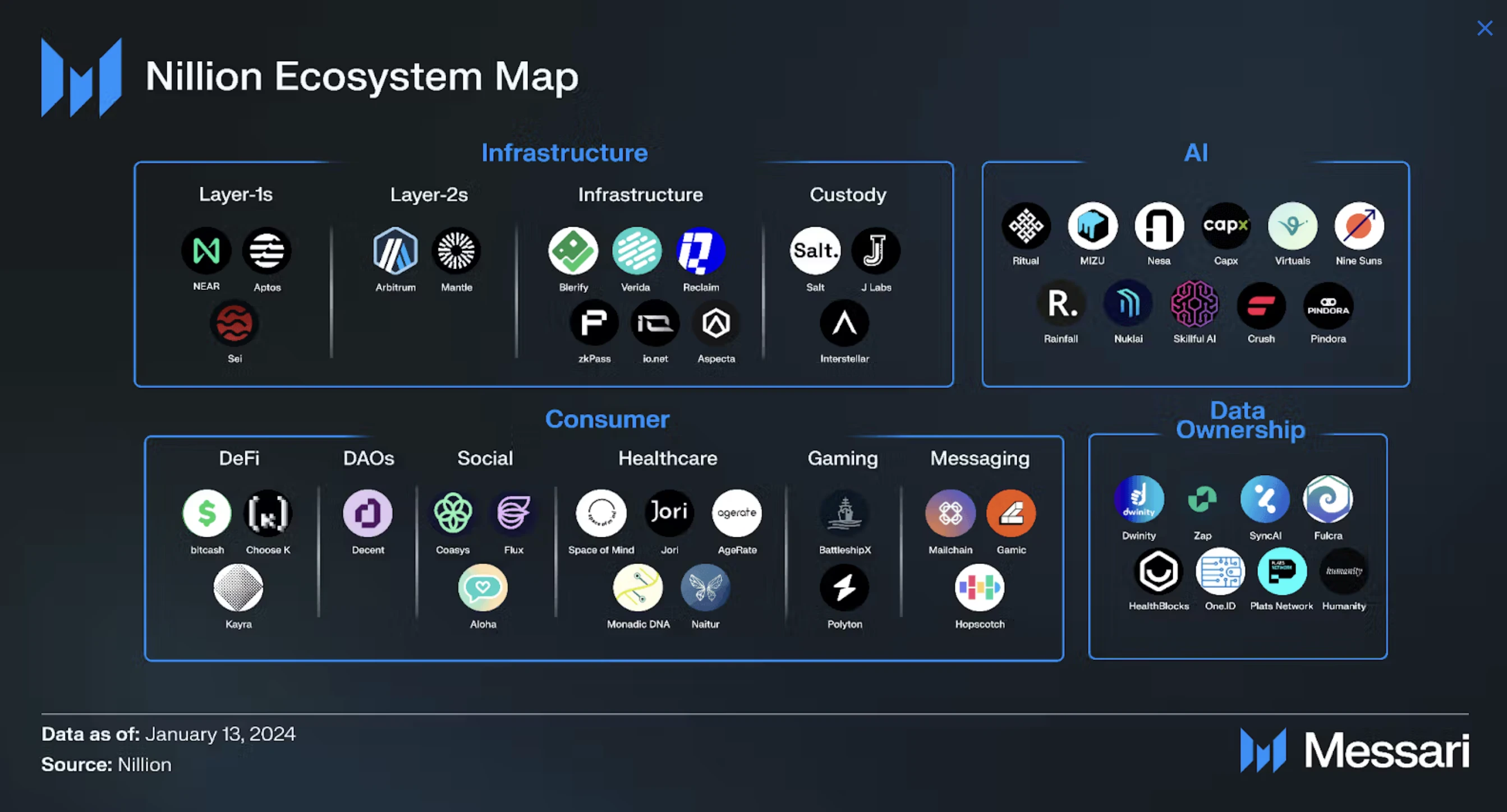 Nillion 已与 Virtuals、NEAR、Aptos、Arbitrum、Ritual、io.net 和 Meta 等公司/项目建立了合作关系。