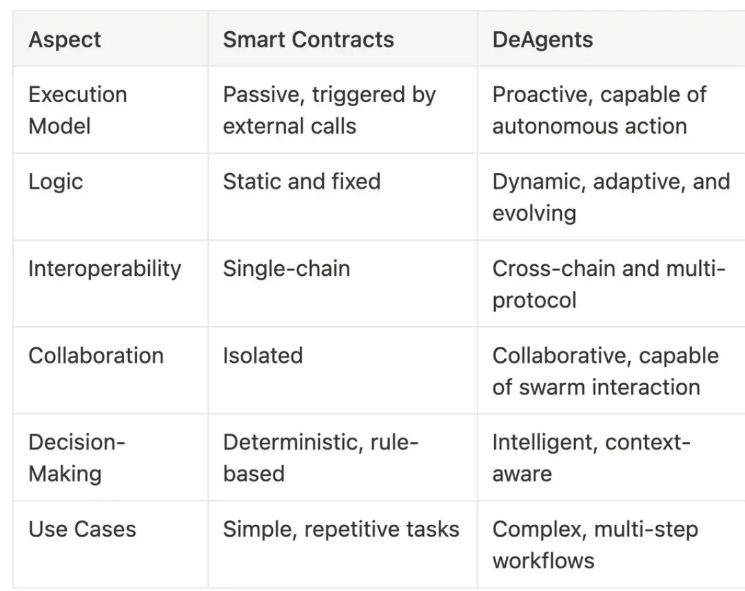 DeAgent 是升级版的智能合约,更灵活,可以处理更复杂的任务。