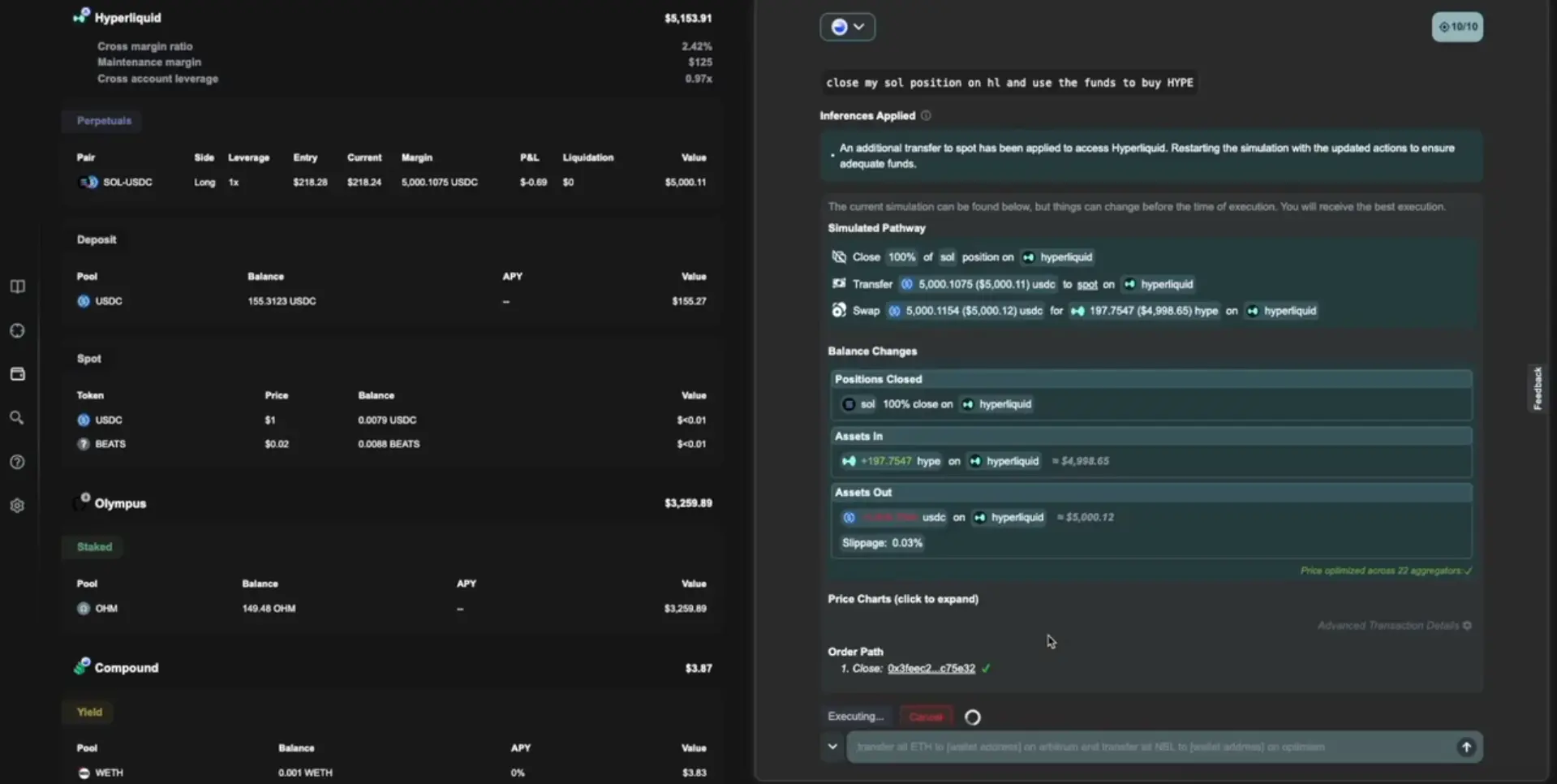 · 优秀的用户体验:通过类似 ChatGPT 的界面,管理资产、执行跨 7 条链的交换、质押、借贷等操作。