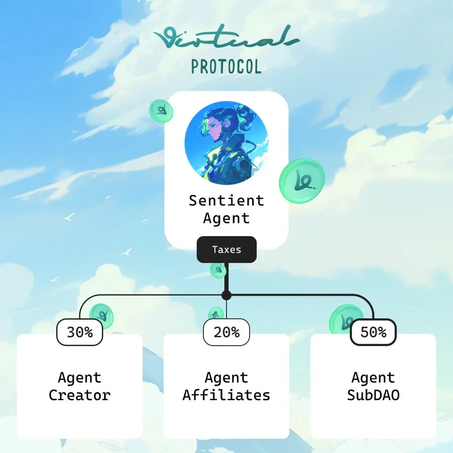 但这些收入不能直接抛售,否则可能引发市场恐慌并破坏生态系统,因为 $VIRTUAL 的价格下跌会连带影响与其挂钩的代理代币。此外,如果不妥善处理这笔资金,平台可能因这部分无法使用的收入面临巨额税负。