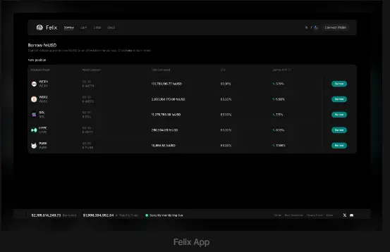 Hype 生态上的原生稳定币协议,用户存入 HYPE、PURR 等资产铸造稳定币 feUSD。已经上线测试网,UI 设计简洁,操作容易