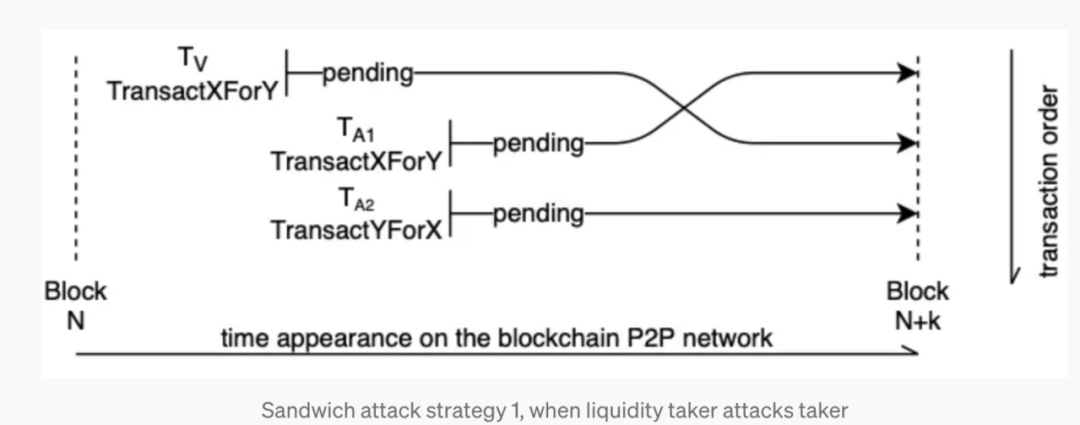 - 后置交易(Back-running):在目标交易执行之后,攻击者发送一笔相反方向的交易(后置交易),将前置交易中的代币卖出,利用目标交易造成的价格波动获利。