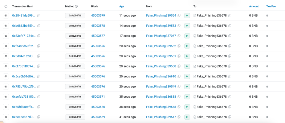 0Gwei交易机制存在被钓鱼合约利用的空间。0Gwei交易使得钓鱼合约能够以0成本进行转账,加剧了钓鱼攻击者的猖獗程度,我们在BSC上已经侦查到多个0Gwei钓鱼合约,这些合约最初以持有48Koge代币的方式使用48Club的0Gwei交易,尽管48Club对此做了一定的限制,但截止到发稿为止,我们仍然观测到数个通过48Club 0Gwei交易服务进行的钓鱼行动。