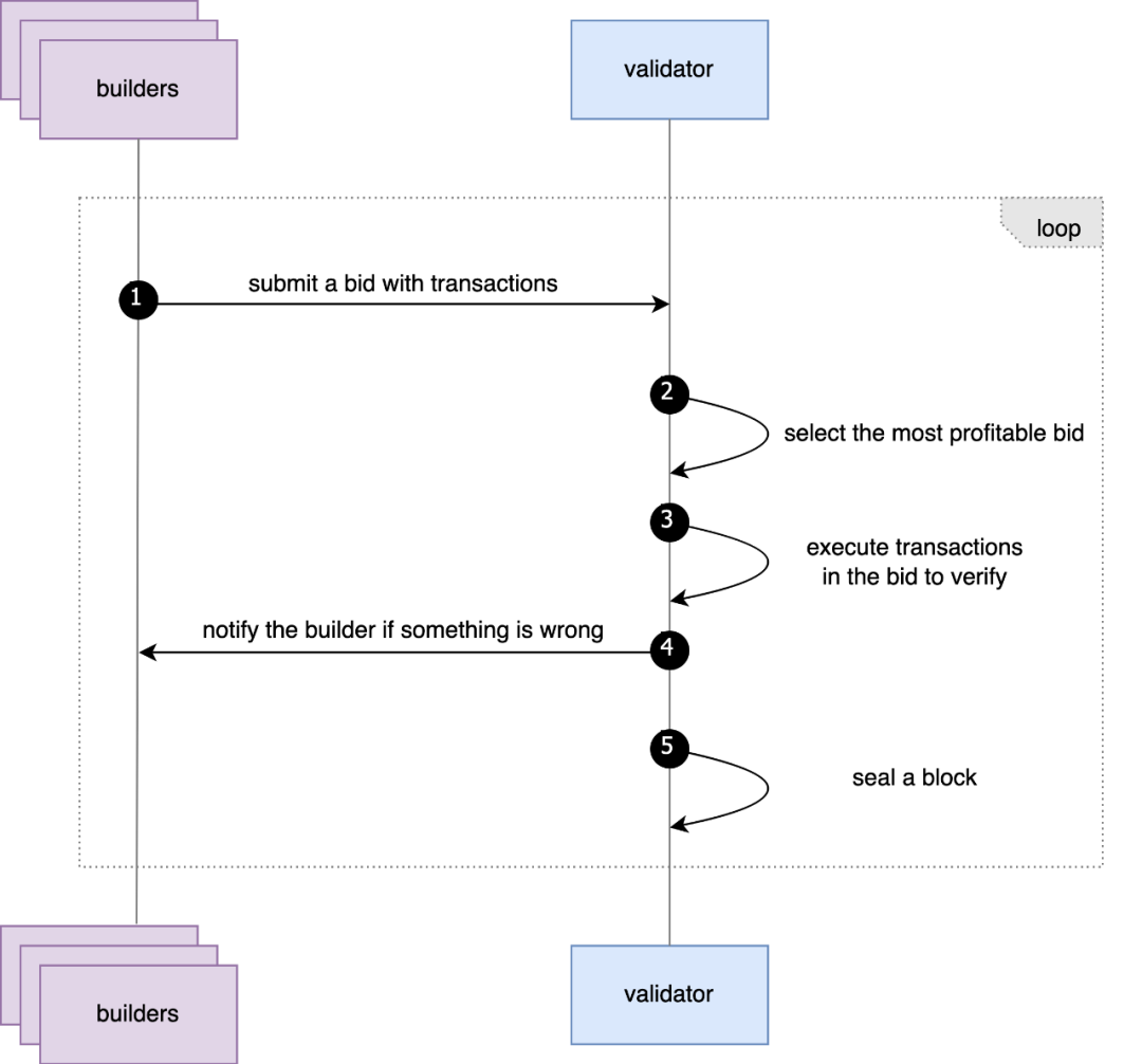 在PBS机制上,BSC沿用了大部分以太坊的实现机制,但是考虑到BSC在共识机制、验证者网络拓扑等因素与以太坊有一定差异,BSC与以太坊在PBS机制实现上存在一些细节差异: