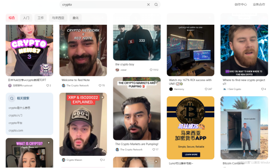 除了一马当先的MEME外,广告与植入也不少见。实际上,即便在小红书还未海外爆火之时,平台就已存在诸多Crypto的内容,但出于监管原因,不论是代币推荐还是技术分析,都相对偏保守,加之多数KOL倾向于在X平台发言,加密话题热度非常有限。目前,Crypto内容也延续这一趋势,但随着流量的涌入,也有部分新网络移民发布加密相关,XRP、Coinbase、MEME、钱包等内容正持续增加。