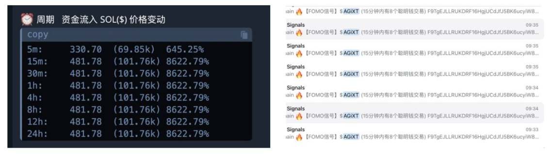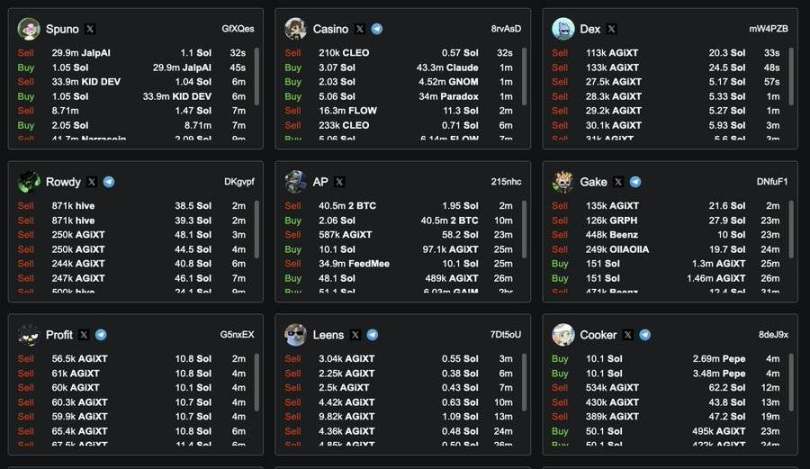 而在大家后知后觉时,与之形成对比的是在该代币发射的半小时分钟内,链上数据显示大量的聪明钱快速购入 AGIXT,并且不乏单笔交易超过 50 SOL 以上的鲸鱼。