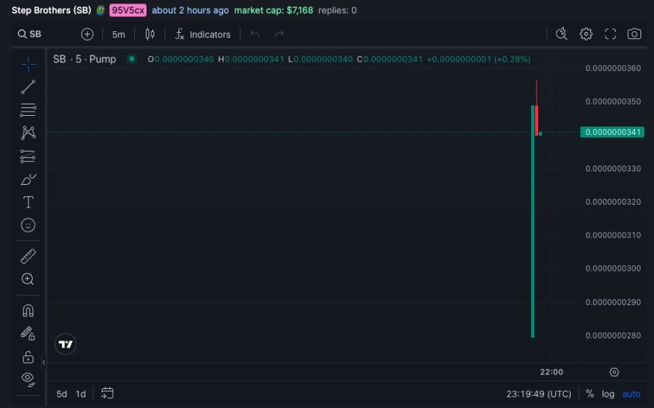 很快,一个受此启发的 Step Brothers (SB) 同名代币就在 pump.fun 上出现了,不过市值还没起来,截至发稿时不到 1 万美金。