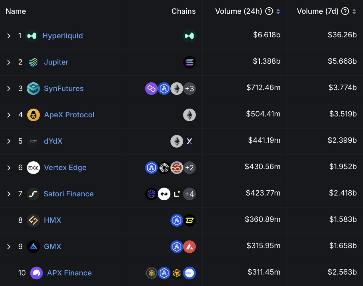 目前 SynFutures、Hyperliquid、Jupiter 或 dYdX 等平台正主导着永续合约交易。SynFutures 作为 Base 上领先的永续 DEX ,可能具有战略优势,因为 aixbt 的大本营也在 Base。