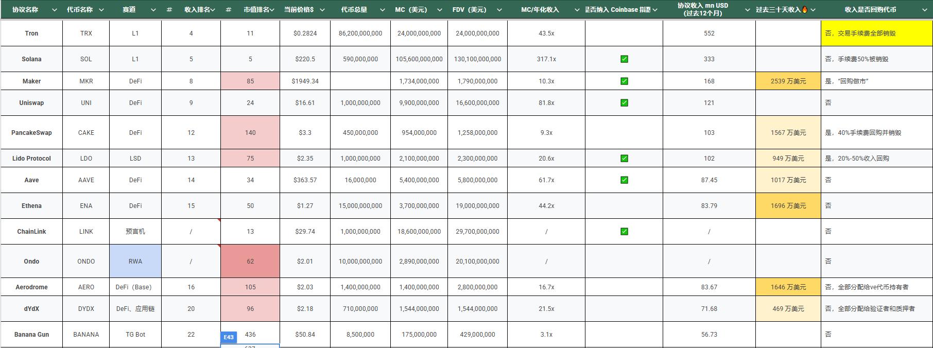 我们列出了近一年来 协议收入前一百名 的代币,可以通过协议收入、含“美”量来挑选最相符的代币。
