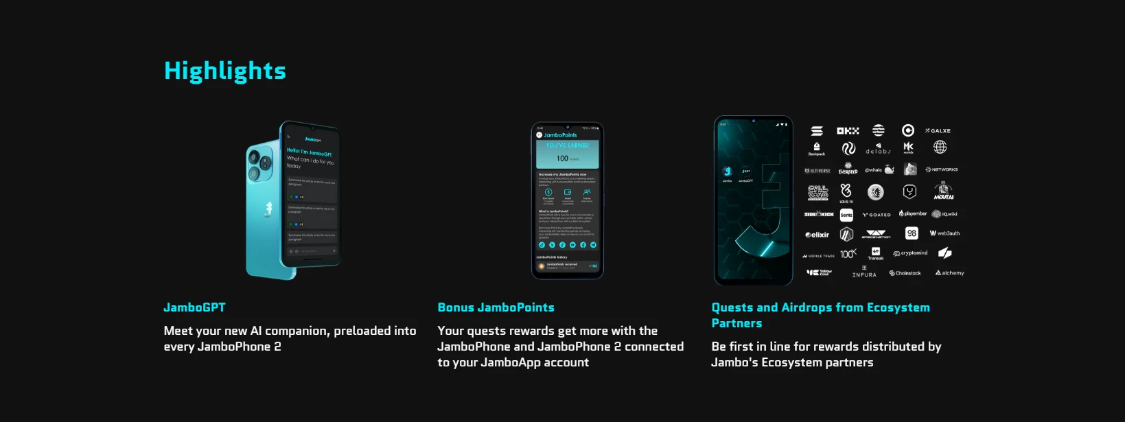 Jambo 是一个链上移动网络项目,以其标志性产品 JamboPhone 为核心,旨在彻底革新人们接触加密行业的方式,并让数百万拉美、东南亚和非洲等新兴市场人接触 Web3 技术。它优先考虑可扩展性、安全性和用户可访问性,简化访问数字金融工具的方式,同时促进了创造力和社区。