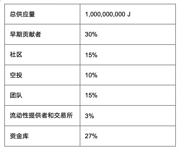 LaunchX 总量: 10, 000, 000 J(占总供应量的 1% )
