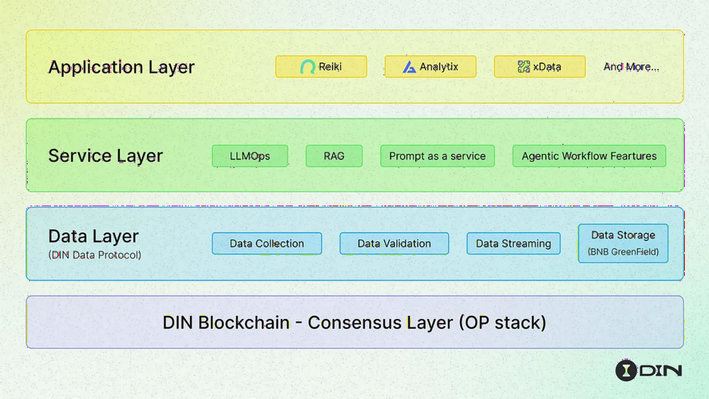 AI代理需要在决策和推理过程中确保可信度和透明度。DIN区块链通过共识层提供去中心化的安全性,依托 OP 栈和 BNB Chain 的安全机制。这一层确保操作和决策的透明性与不可篡改性,从而为 AI代理提供一个可靠且可信的执行环境。