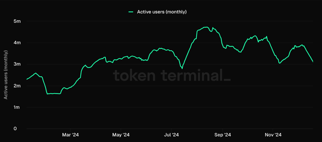 在整个 2024 年,Ronin 等游戏生态系统的用户数量大幅飙升,而且由于 Fableborn 等高品质新游戏的出现,几乎媲美 2021 年 Axie 的辉煌时期。