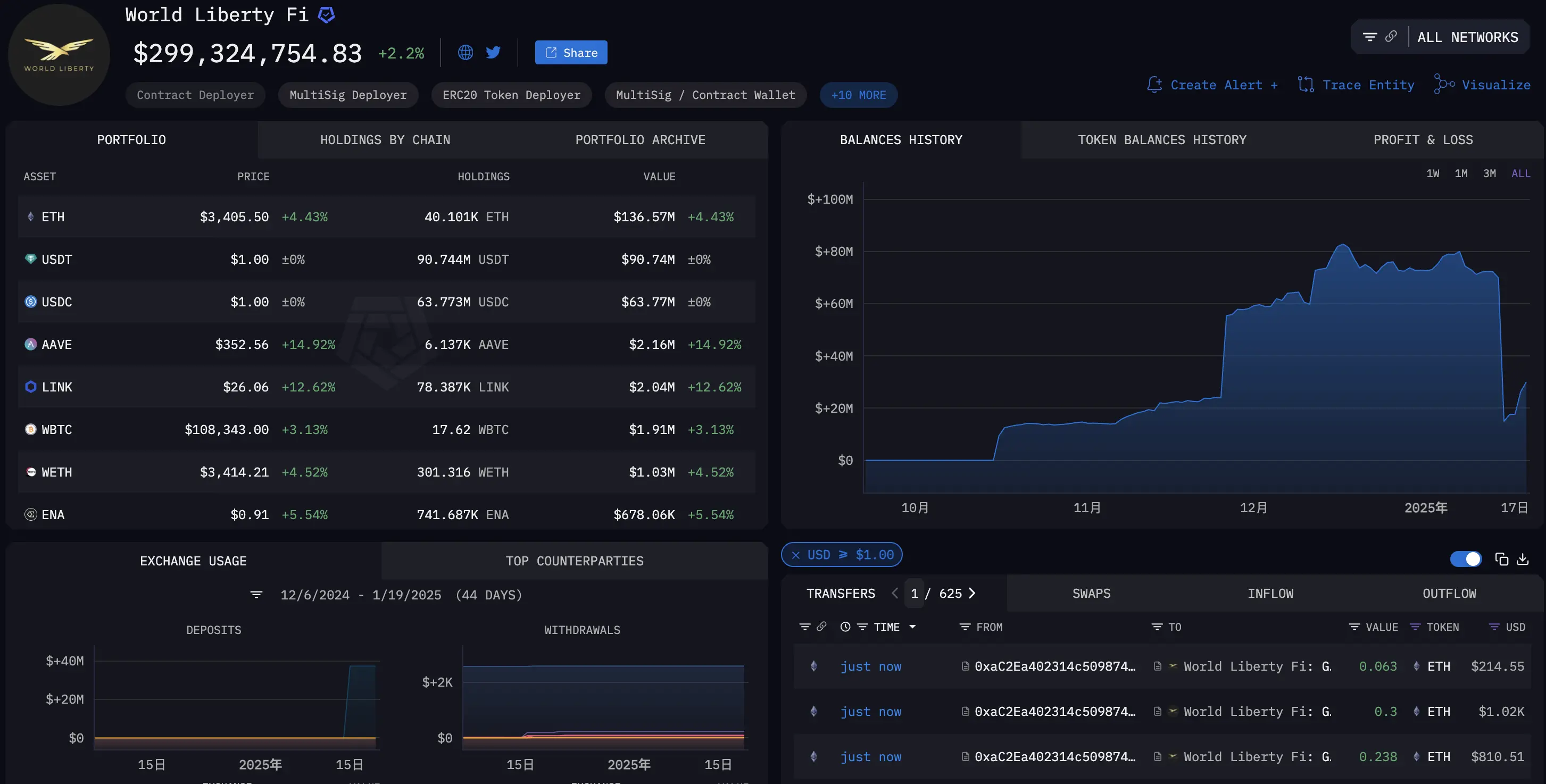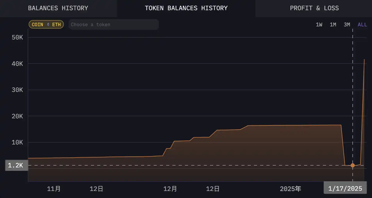 值得注意的是,WLFI 在 $Trump 发布前两日,将近几个月不断在该地址上囤积的 17,000 枚以太坊突然到减持到 1,200 枚「转入 Coinbase 或其他地址」,而在$Trump 大量吸血全部链上资产,大量 ETH 大户换仓 Solana 后。在 19 号开始多笔购入以太坊,到当前持仓已经超过 42,000 枚以太坊,做了一手「好波段」,让以太坊的收益由亏转盈,也让以太坊超过了该地址资产总数的三分之一。