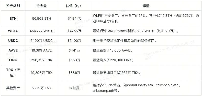 WLFI 手握大量 ETH、WBTC、LINK 和 AAVE 等加密资产,可以说是个“豪气玩家”。它的持仓规模让它在市场上拥有极大的影响力。