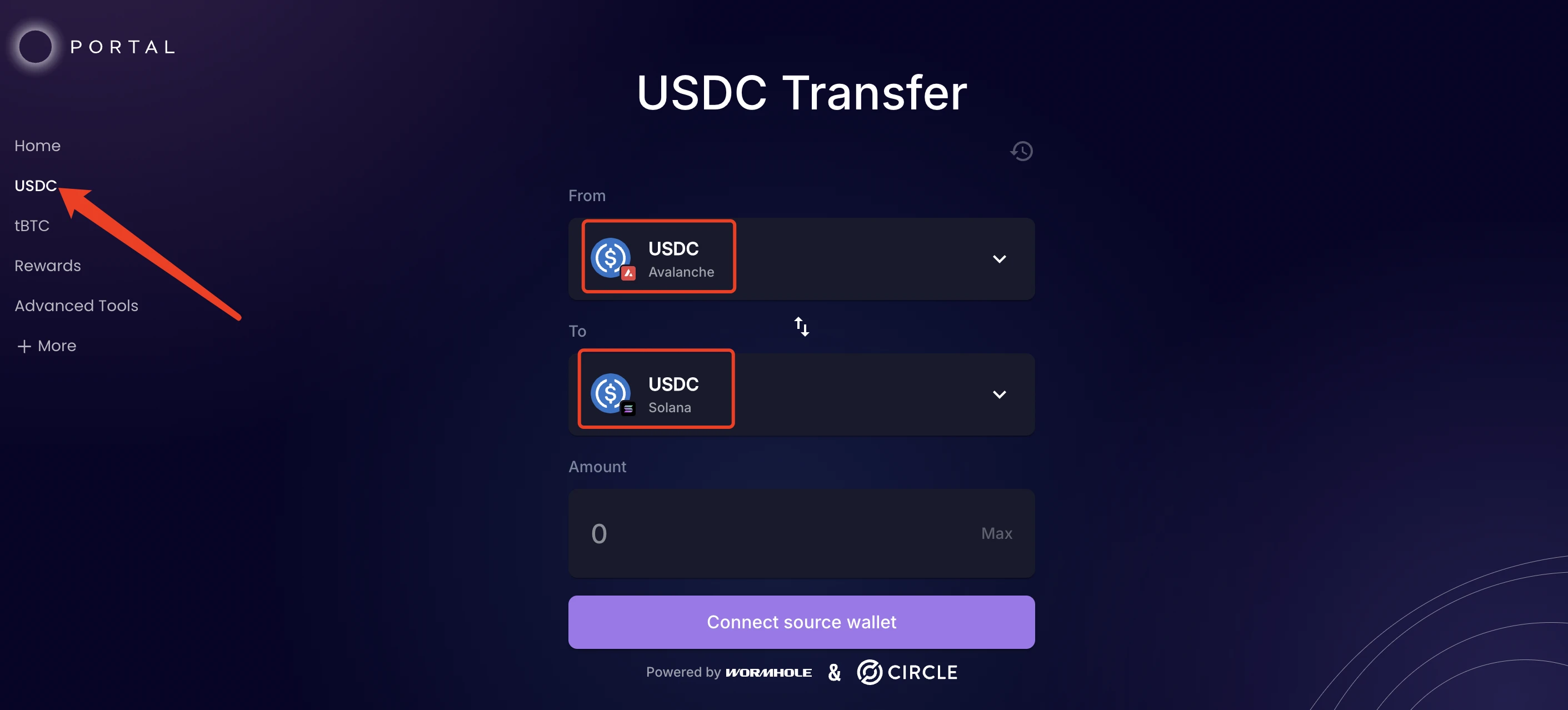 跨链网站: https://portalbridge.com/usdc-bridge/
