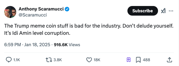 SkyBridge 创始人认为特朗普的行为对行业没有好处,并支持称其为「腐败行为」。