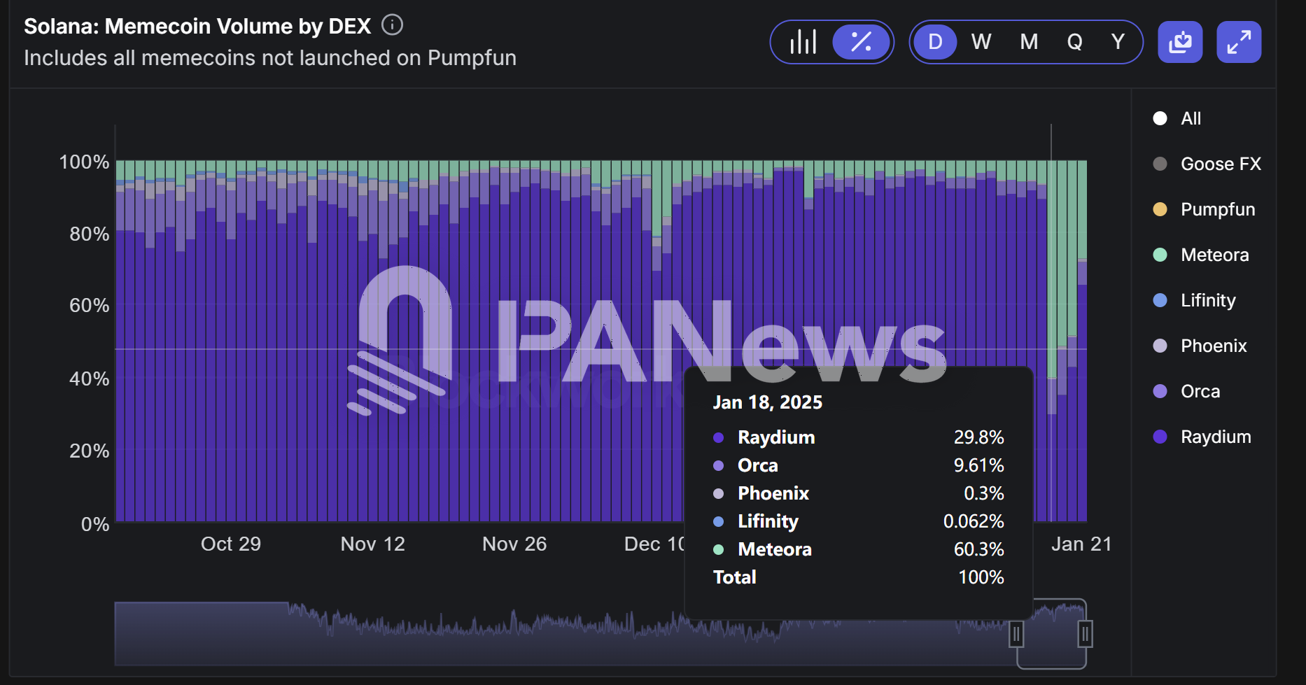 特朗普发币搅动Solana DeFi格局:Meteora日交易量飙升8倍,Raydium短时份额跌至不足三成
