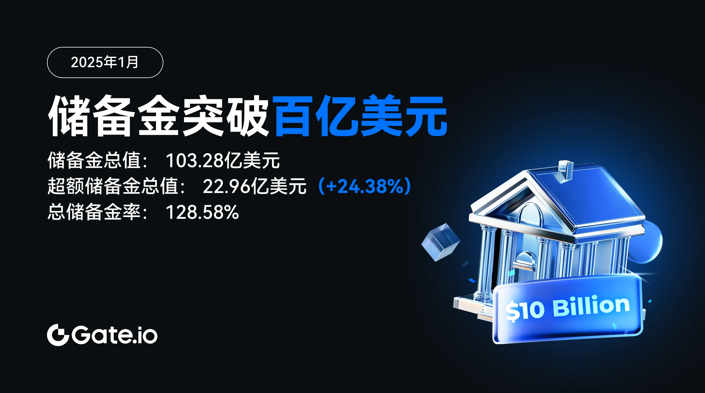 Gate.io储备金突破100亿美元,超额储备22.96亿美元,总储备金率128.58%