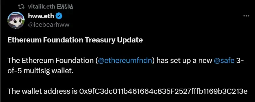 面对社区的突然发难,EF 显然没有做好万全的对策来平息众怒,甚至反其道而行之,以抛售 ETH 来回应社区提出的质押建议。次日 Vitalik 发文宣布,以太坊基金会财政更新,以太坊基金会已经建立了一个新的 3-of-5 多重签名钱包,EF 将使用这个新钱包参与 DeFi 生态系统,并已在 aave 上进行了测试交易。