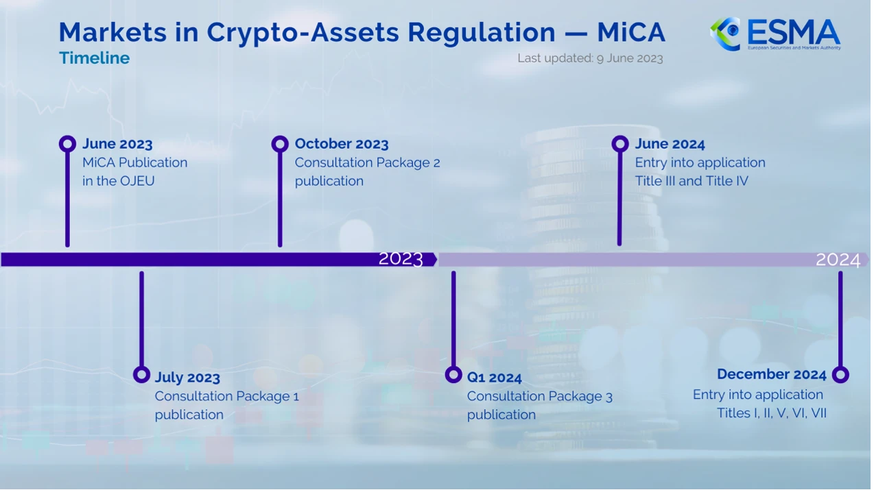 欧盟 MiCA 的实行时间线。来源:欧洲证券及市场管理局