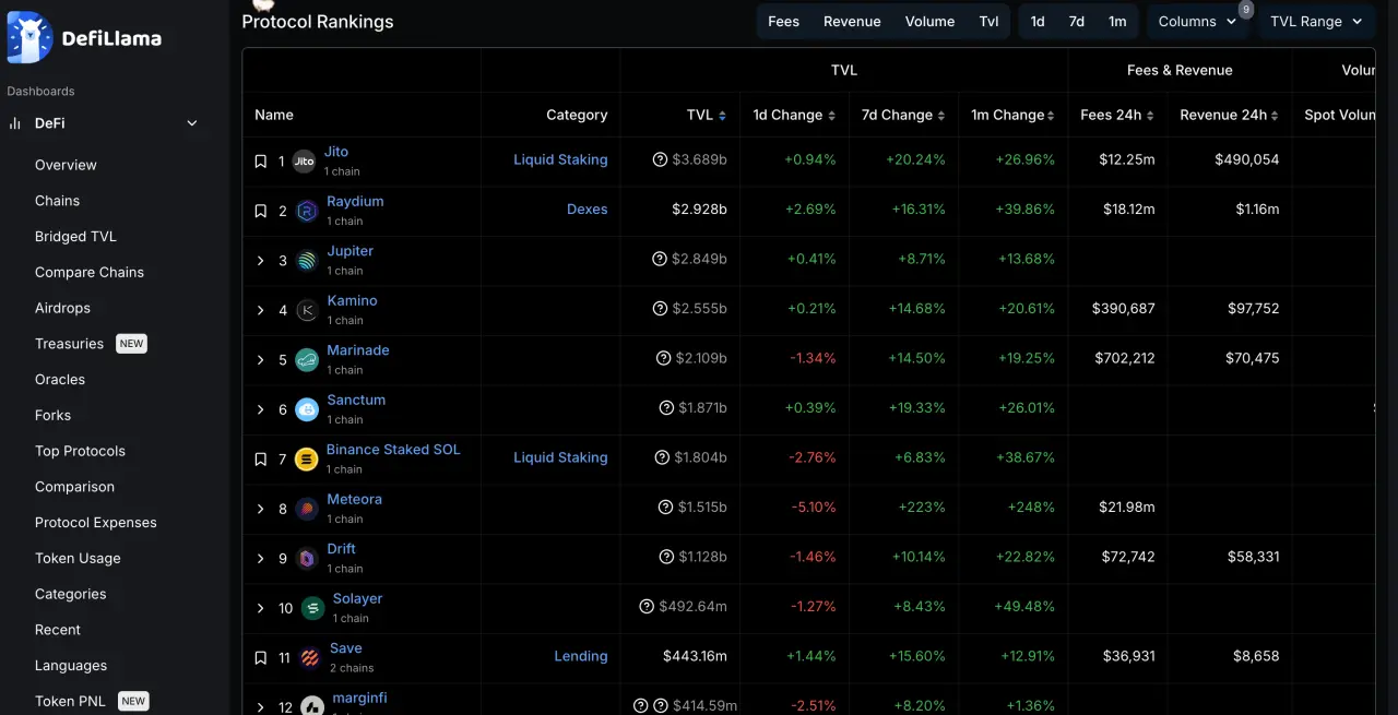 1月21日,据 DefiLlama 数据,Meteora 24 小时内的手续费达 1.1193 亿美元,超越 Solana 位居第一。