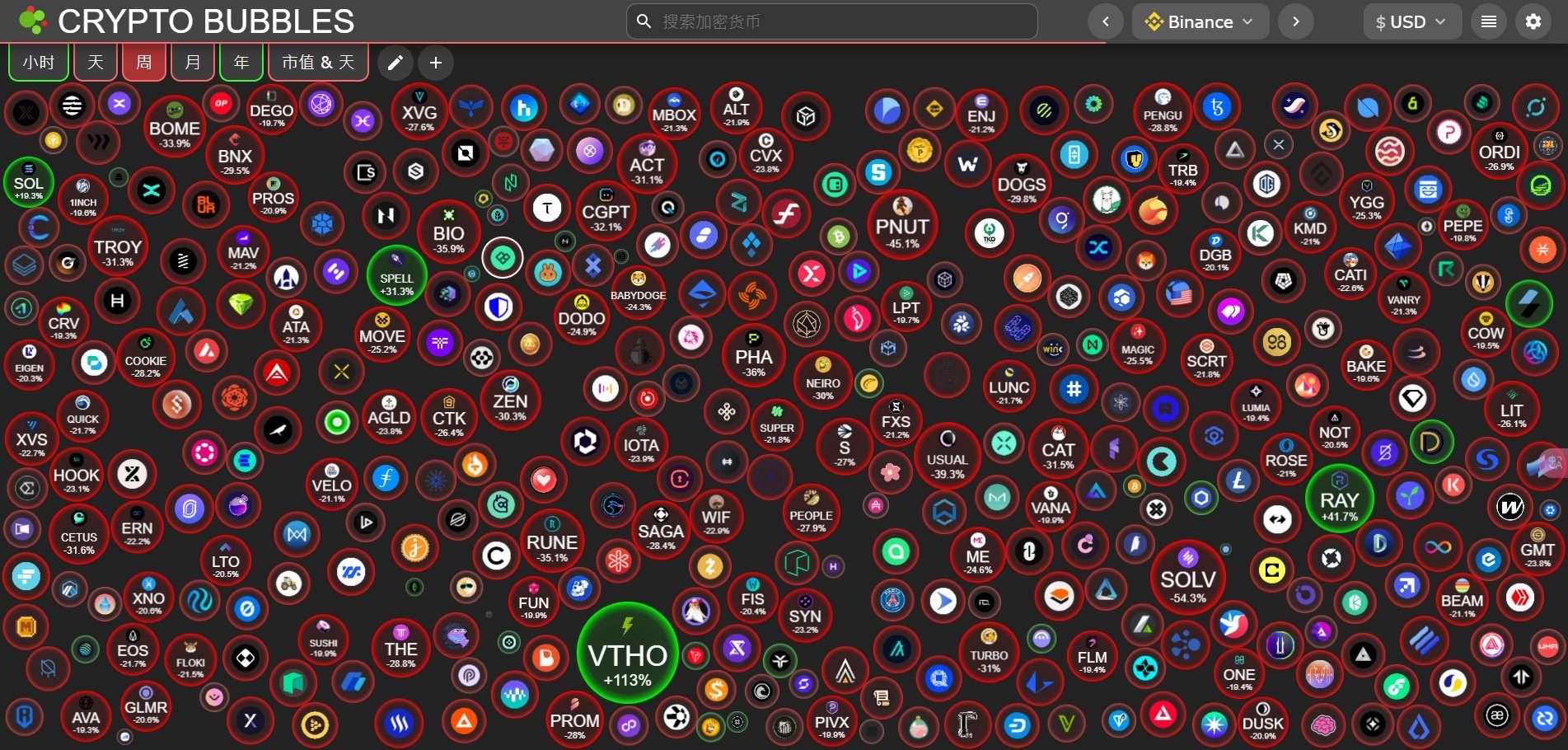 本周 加密市场 ,VeThor、Raydium、Spell 分别以 +112%、+41.7%、+31%的涨幅领跑。