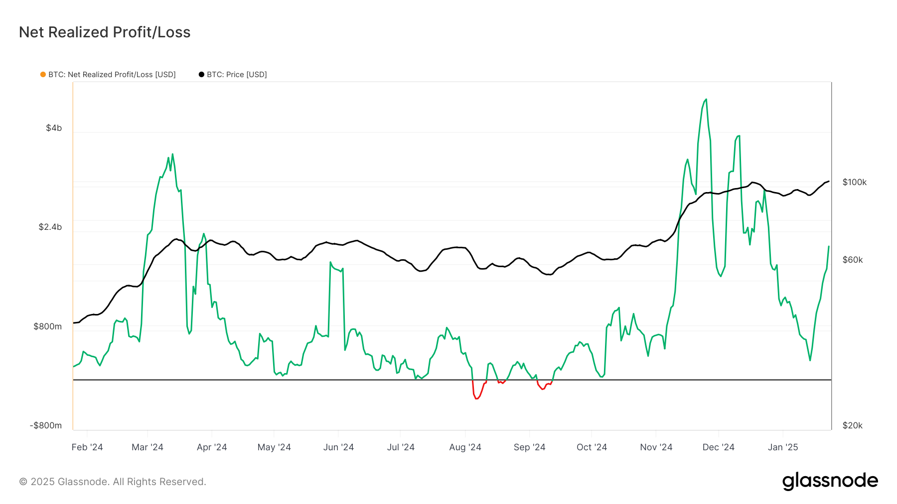 比特币已实现凈损益 指标 显示,比特币市场表现出净损益回升的迹象。随著价格上升,市场实现损益从此前的向下逐渐回升,表明短期内投资者情绪有所改善,或存在重新进入市场的动能。