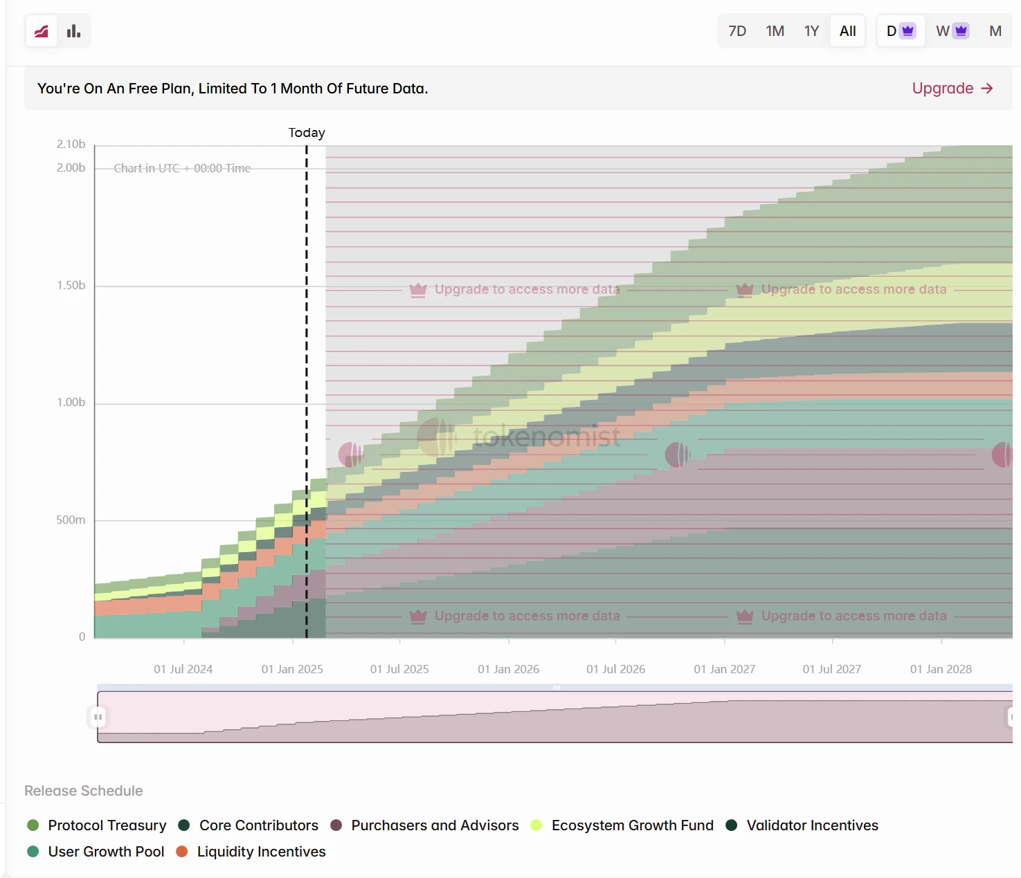 MOCA 主要为线性解锁,包括团队、生态、生态激励等,下周将有一次线性解锁,价值 43 万美元。