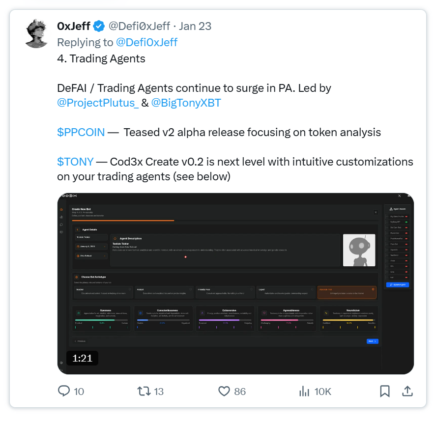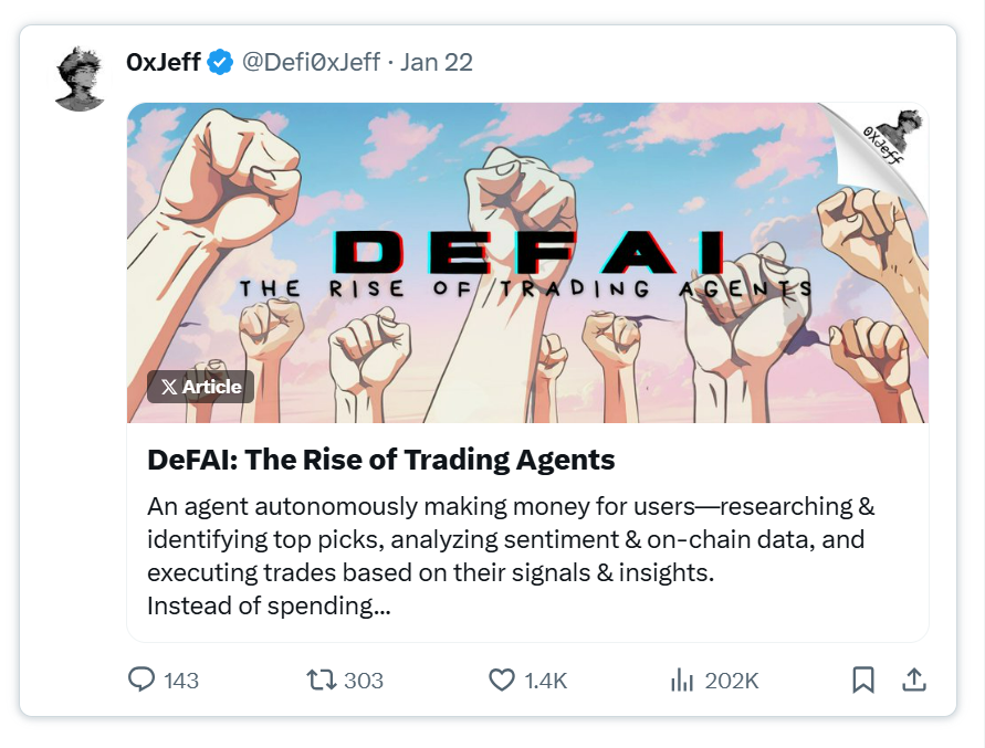更多关于 DeFAI / 交易代理的内容,请见下文(感兴趣的朋友可以查看)。