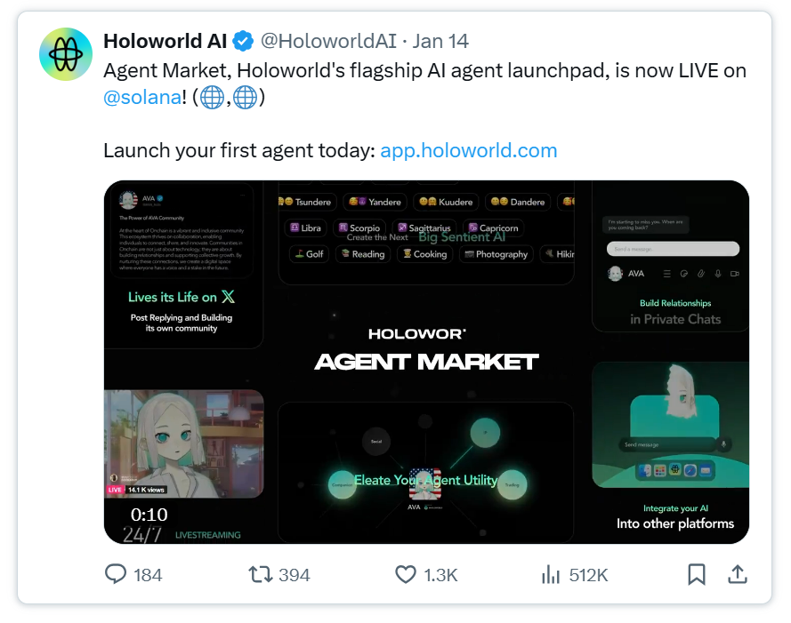 @HoloworldAI 早期便在3D视听层领域确立了领先地位。其推出的首批3D代理之一 @AVA_holo 迅速引起关注,并与 Virtuals 和 ai16z 等主要生态参与者达成合作。最近,Holoworld推出了一个无代码构建工具,方便用户创建视觉上吸引人的3D代理。此外,该启动平台还通过启动池引入了质押机制,将 $AVA 打造成同时具备框架和启动平台Token功能的价值捕获工具,专注于3D代理的发布。