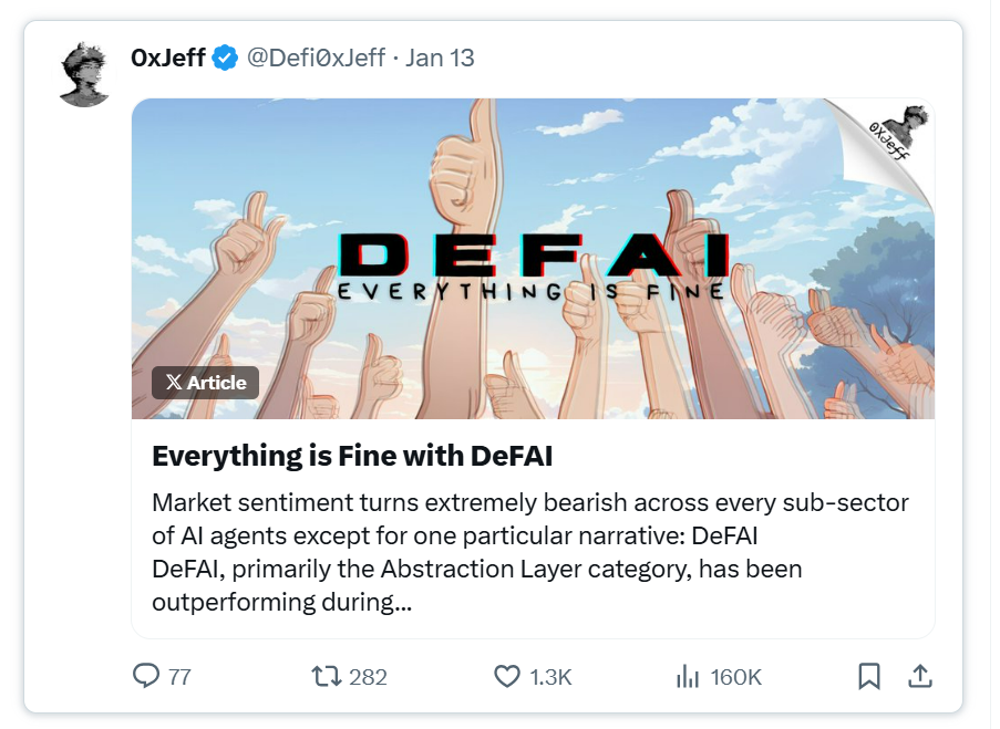 更多关于 DeFAI / 抽象层的内容,请见下文(感兴趣的朋友可以查看)。