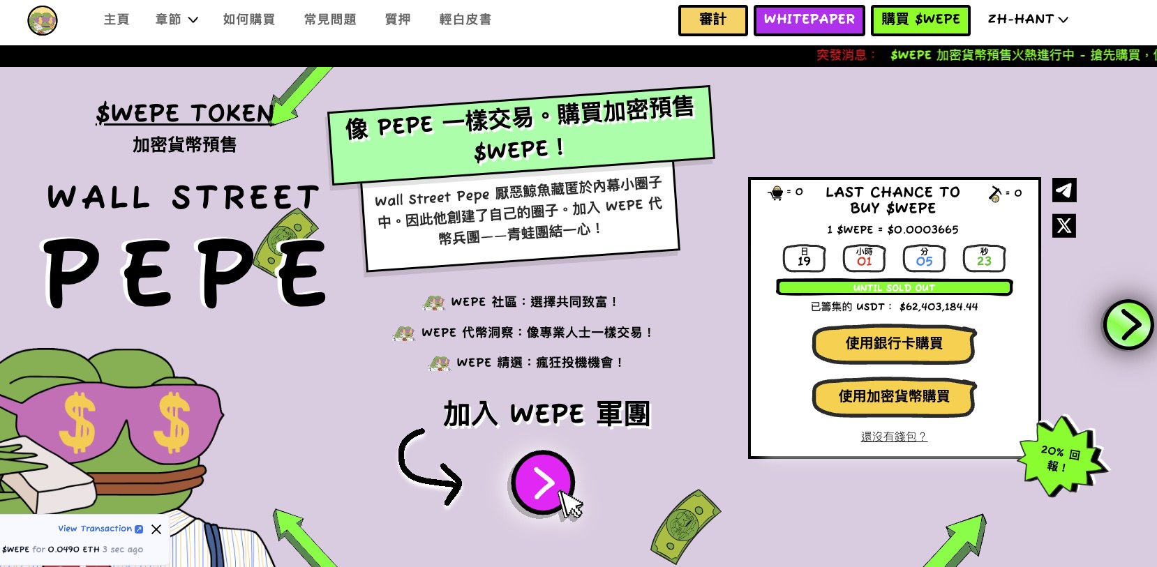 要留意,$WEPE仍在预售阶段,在预售结束后再上市DEX及CEX,建议投资者可进入官方网站、X及Telegram了解预售最新资讯。
