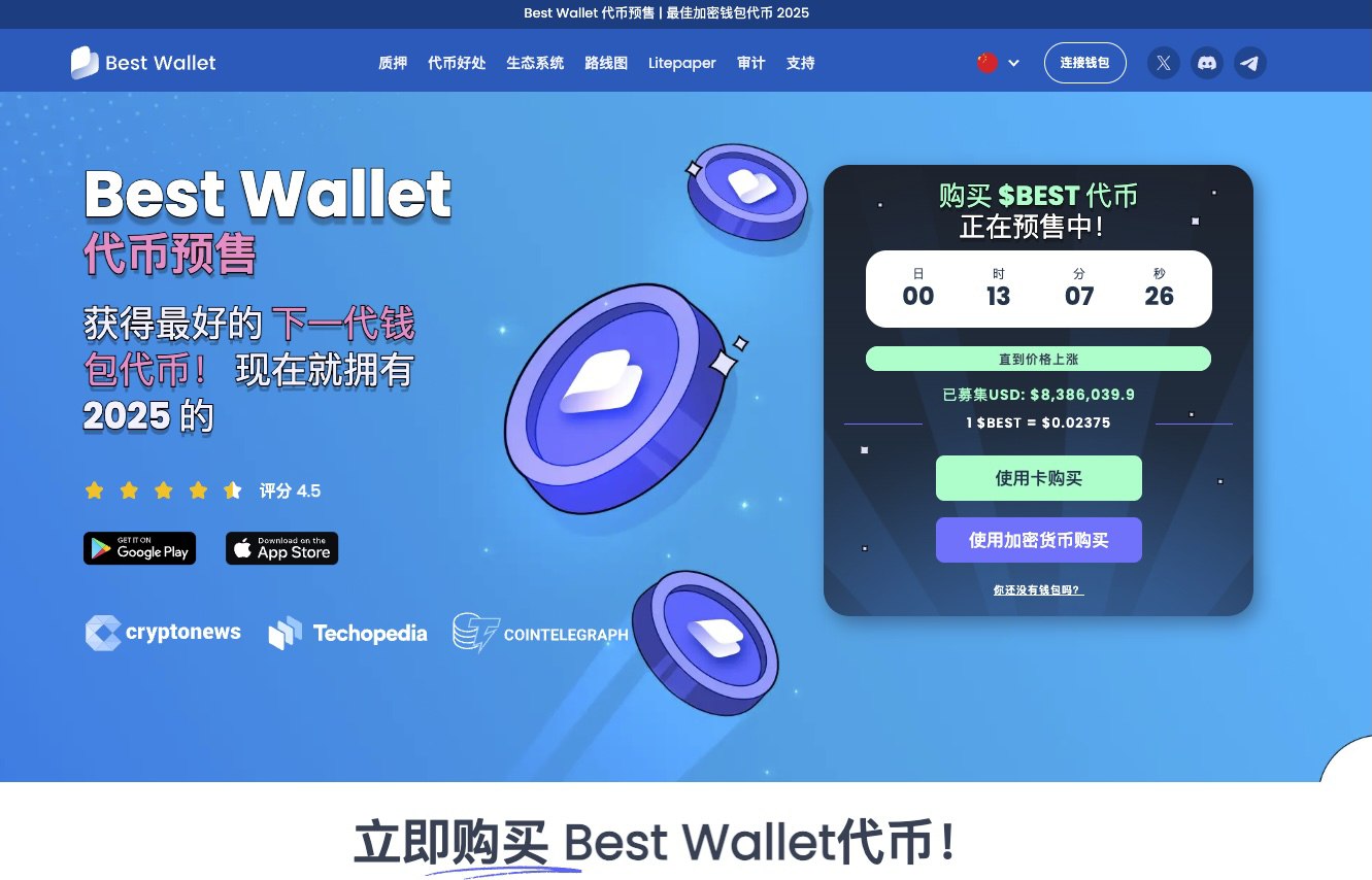 Best Wallet实用型代币$BEST在2025年加密市场中异军突起。这款专为多链操作设计加密钱包,不仅支援超过50条主流区块链,还提供多项创新功能,使其成为投资者理想工具。$BEST在预售阶段已筹集780万美元,吸引了超过100万用户关注。