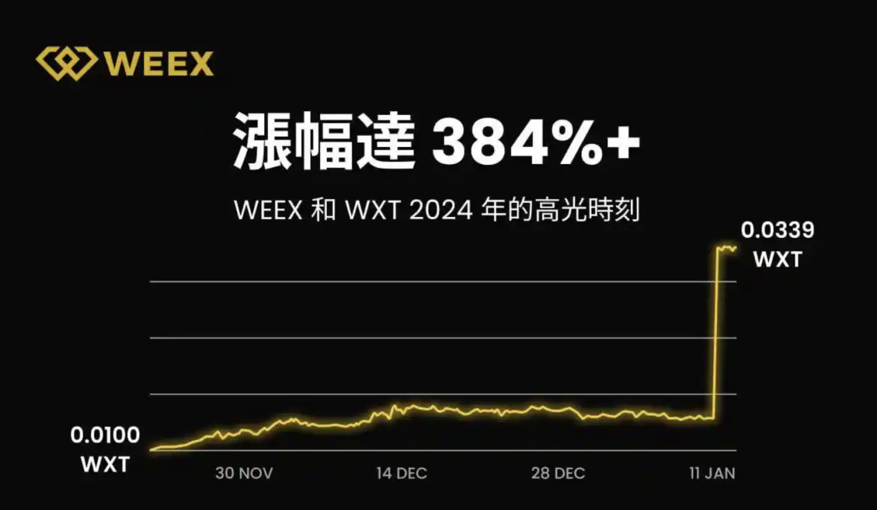 作为 WEEX 交易所 的原生代币, WXT 吸取了 BNB 和 BGB 的成功经验,并透过自身创新建构了多元化价值体系。从 2023 年 8 月上缐至今,WXT 价格已从 0.01 美元上涨至 0.0339 美元,累计涨幅 384%,成为市场瞩目的新星。