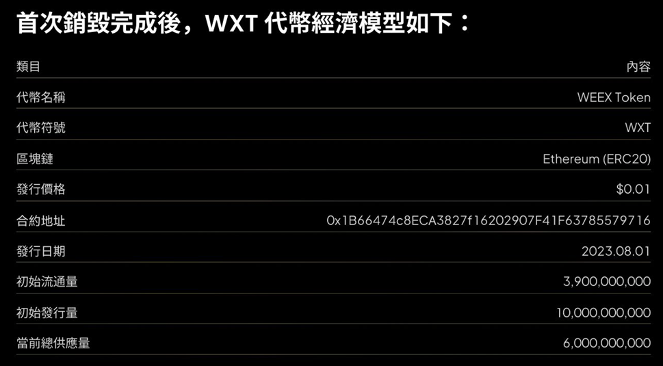 WEEX 计画自 2025 年起实施季度回购并销毁机制,首批销毁 40 亿枚 WXT,占总供应量的 40%,价值约 1.2 亿。这项销毁计画不仅直接减少市场流通量,也透过稀缺性提升了 WXT 的价格支撑和未来升值预期。