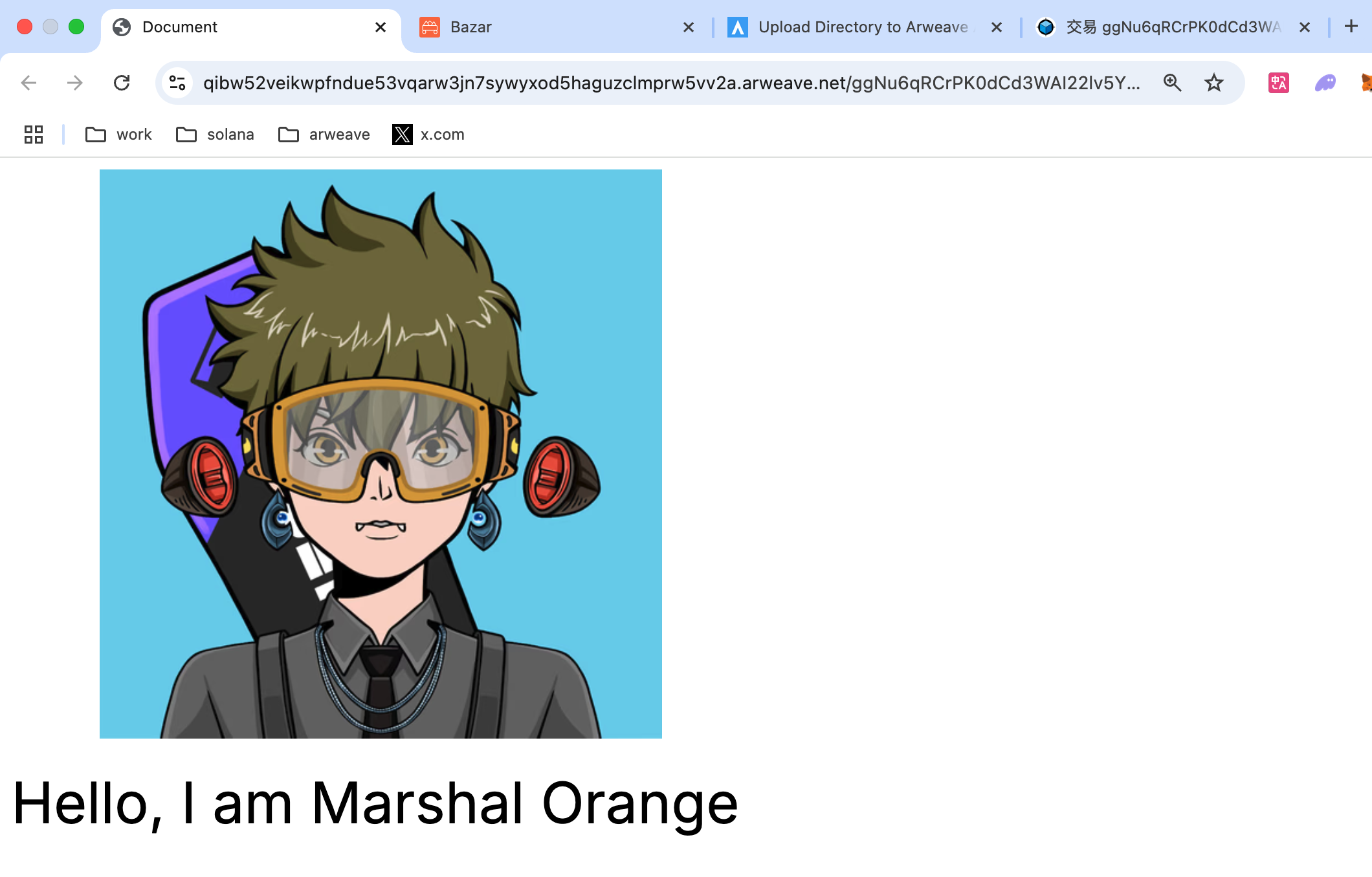 注册好域名后,将域名与交易哈希绑定,即可使用 ArNS 访问网页,比如笔者的 ArNS 为 marshalorange,绑定后即可访问 网页 ,另外可通过 AR.IO 的任意网关访问。