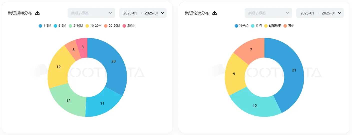 在融资金额和轮次方面, 100-300 万美元是数量占比最多的融资区间, 种子轮是最热门的融资轮次,但占比率有所下降,共有 19 个项目完成种子轮融资 。知名项目包括支付网络 1Money Network (2000 万美元)、Common Prefix 孵化的 L1 原语 Pod Network (1000 万美元)、 开源经济基础设施 Merit Systems (1000 万美元)、Cosmos 跨链生态系统钱包 Keplr 等。