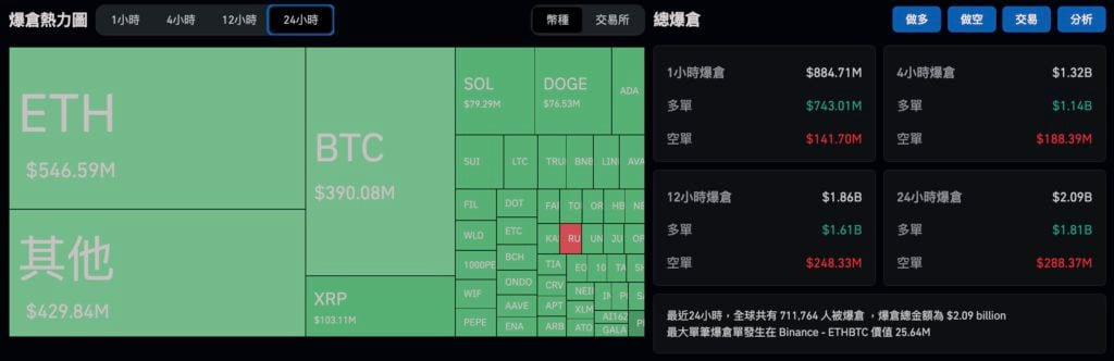 比特币持续下杀背景下,Coinglass 数据 显示,过去 24 小时,加密货币全网爆仓金额已破 20 亿美元,多单爆仓 18.1 亿美元,空单爆仓超过 2.88 亿美元,有超过 71 万人爆仓。