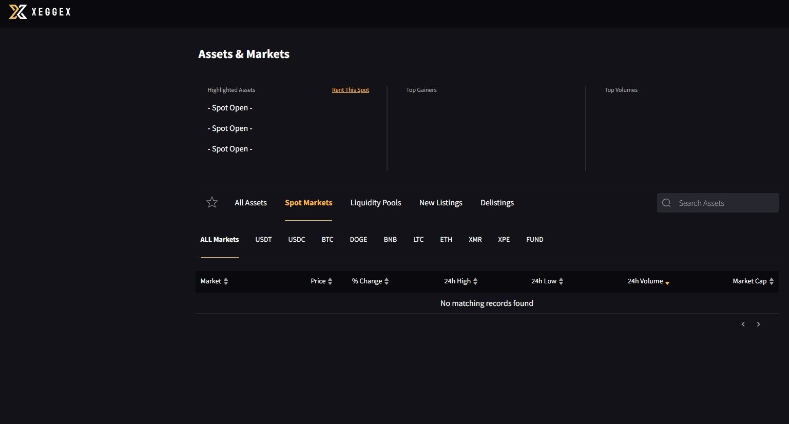 下图可看到,Xeggex 交易所官网目前无法显示任何交易对与𧹒卖价格,仅剩下交易市场的模板框架,无法查询市场行情与交易资讯。这种情况通常可能意味著交易所的流动性不足已枯竭,或是伺服器遭遇技术性问题,甚至可能涉及平台资金异常或是「捲款跑路」状况。
