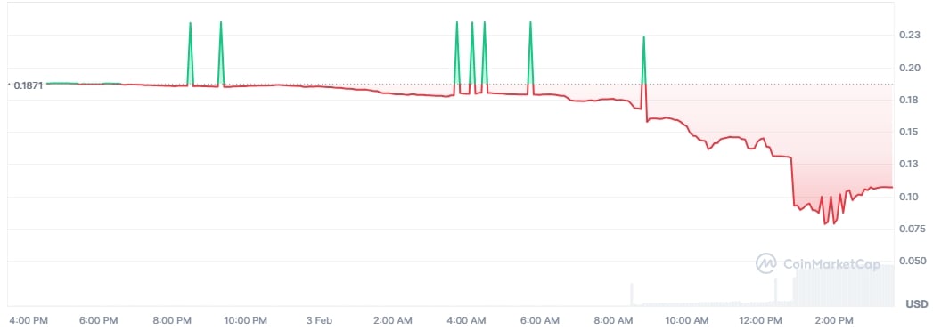 根据 CoinMarketCap 数据,XPE 在今日凌晨仍维持相对稳定,但随后𫔭始缓步下跌,并于中午后出现明显跳水,最低跌近 0.075 美元,市场恐慌情绪蔓延。