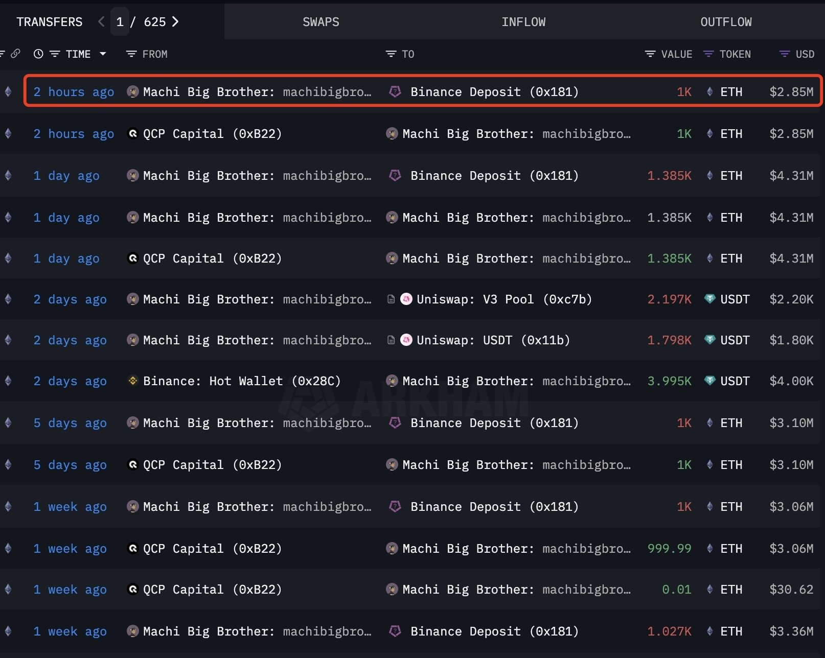 值得一提的是,稍早作为以太坊信徒的麻吉大哥成功逃顶外,Lookonchain 还 发现 另外一个疑似逃顶的以太坊巨鲸,且其可能是今日造成以太坊大型卖压的主力之一。