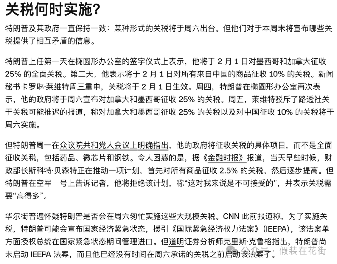 CNN整理的这个很好,另一个角度说明了政策都是口头传达,预期模糊,也能为什么之前大家不是普遍相信会“全面”加关税,以及没有对此进行定价: