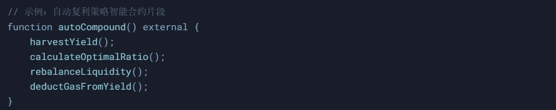HeyAnonai 构建的智能体市场已集成 80+ DeFi 协议,支持 14 种语言的自然交互。其“策略工厂”允许开发者将复杂策略封装为可组合模块,例如: