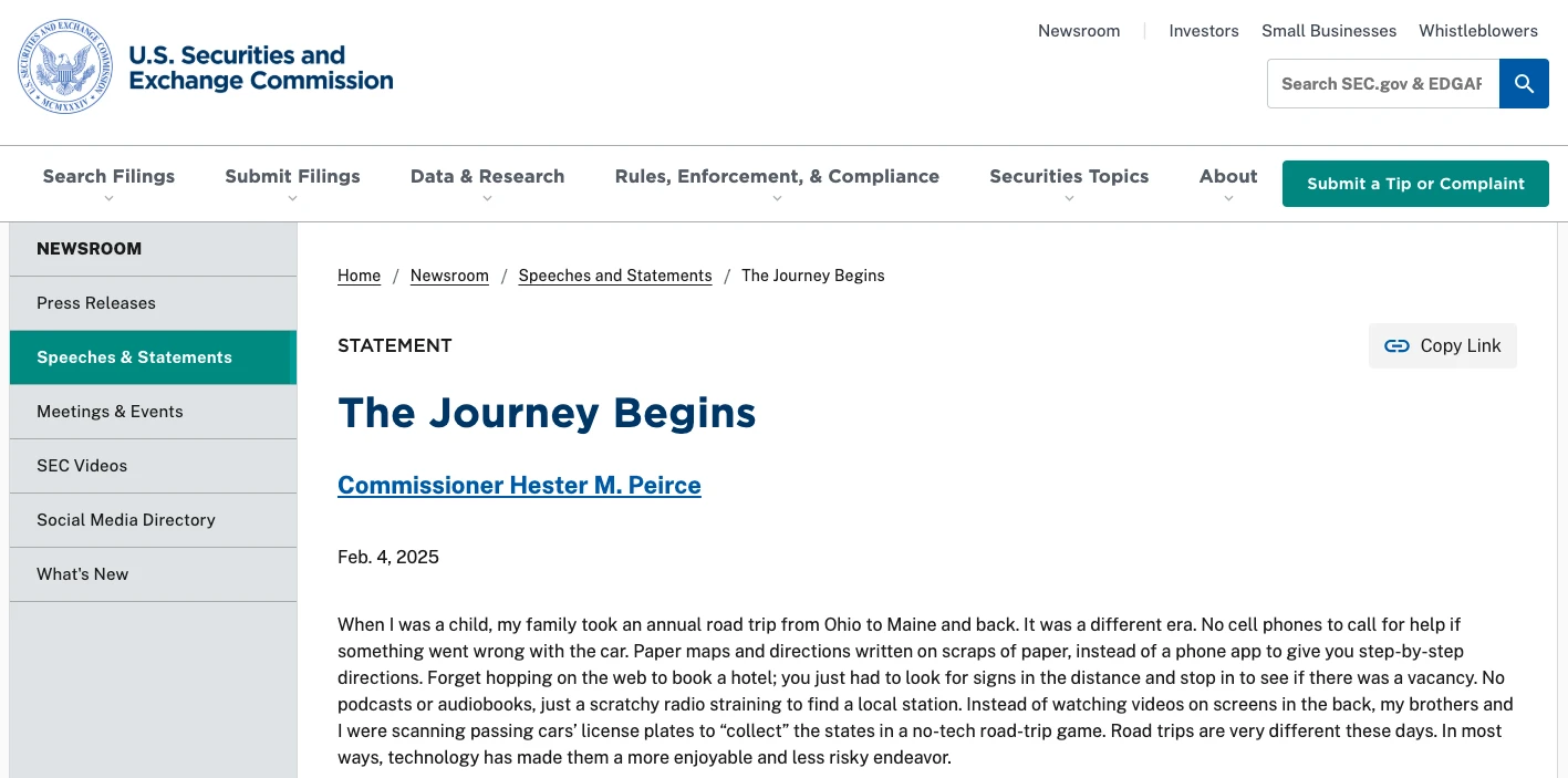 https://www.sec.gov/newsroom/speeches-statements/peirce-journey-begins-020425