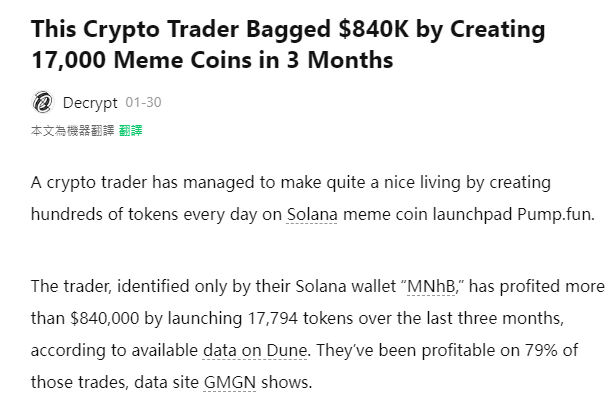 前几天有个统计,pump fun 上最牛的一个账户,3 个月发了 17000 个币。