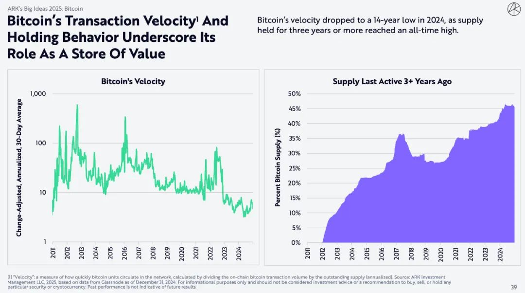 比特币的交易速度和持有行为凸显了其作为价值存储手段的作用